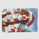 Ce design festif reflète l'esprit joyeux de la période des fêtes, avec un adorable petit portant un chapeau de Père Noël. Le chien est niché dans un pays des merveilles hivernales, avec un bonhomme de neige, un sapin de Noël décoré et des cadeaux joliment emballés. Les flocons de neige tombent doucement, ajoutant une touche magique à la scène, tandis que les couleurs vives des décorations de vacances créent une atmosphère chaleureuse et joyeuse.
