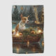 Jetez un coup d'oeil à la magie de la saison des Fêtes avec cette illustration magnifiquement détaillée, montrant un chien fier assis dans un bateau à la décoration festive, glissant à travers un lac serein de Noël. Les lumières scintillantes des pins voisins se reflètent dans l'eau, projetant une lumière chaude et festive qui renforce l'ambiance cosy. Des ornements pendent des côtés du bateau, tandis que des lanternes brillantes éclairent le chemin, créant une scène qui capture l'essence véritable de la chaleur et de la joie de Noël. Cette oeuvre nostalgique apporte une touche de magie de vacances à tout espace, parfait pour ceux qui chérissent l'esprit de la saison.