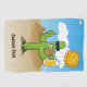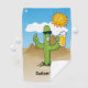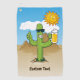 Dessin de cactus souriants avec lunettes de soleil dans un paysage désertique tenant une tasse de bière et donnant des pouces. Texte personnalisé.
