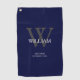 Cadeau de témoin de mariage élégant monogramme bleu marine Serviette de golf. Créé par l'artiste RjFxx *Tous droits réservés. #CadeauDeTéMoinPersonnalisé #ServietteDeGolfÀMonogramme #Golf #Mariage #ZazzleMade