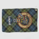 Le badge Campbell crest entouré d'une sangle et boucle sur l'arrière - plan tartan. Texte personnalisé.