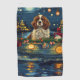 Jetez un coup d'oeil à la magie de la saison des Fêtes avec cette illustration magnifiquement détaillée, montrant un chien fier assis dans un bateau à la décoration festive, glissant à travers un lac serein de Noël. Les lumières scintillantes des pins voisins se reflètent dans l'eau, projetant une lumière chaude et festive qui renforce l'ambiance cosy. Des ornements pendent des côtés du bateau, tandis que des lanternes brillantes éclairent le chemin, créant une scène qui capture l'essence véritable de la chaleur et de la joie de Noël. Cette oeuvre nostalgique apporte une touche de magie de vacances à tout espace, parfait pour ceux qui chérissent l'esprit de la saison.