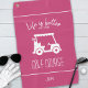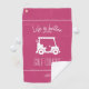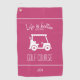 Audacieux et amusant, cette serviette de chariot de golf rose vif célèbre la citation La vie est meilleure sur le parcours de golf avec une silhouette de chariot blanc croquant. Ajoutez des initiales ou un nom pour le personnaliser. Conçu pour elle, c’est un cadeau joyeux et pratique pour les golfeuses — parfait pour les anniversaires, les tournois ou juste comme ça.