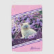 Une surcharge de mordicité avec ce chaton aux yeux bleus assis dans un panier en osier au milieu des fleurs lilas. Personnalisez en modifiant le texte de la zone de texte avec votre nom ou monogramme ou supprimez le texte si aucun texte n'est requis.