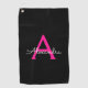 Serviette De Golf Chaud rose noir Script Girl Nom du monogramme