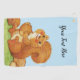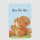 Cette serviette de golf a un mignon écureuil rouge avec une queue moelleuse et des joues roses sur le point de manger son tas de noix et de glands assis dans l'herbe verte sous un ciel bleu. Customisez votre texte avec le modèle.