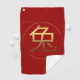 Idéogramme de lapin chinois doré avec un effet numérique en relief sur arrière - plan transparent pour la couleur de votre choix. Conception sur la serviette de golf avec arrière - plan rouge foncé. Vous pouvez facilement modifier la couleur arrière - plan et ajouter du texte (police, couleur, taille et position) en cliquant sur le bouton personnaliser. Sac fourre-tout correspondant, sac réutilisable et plus encore... Parfait pour le Nouvel An Chinois du Lapin 2023 ou Anniversaire (personnes nées dans l'année du Lapin).