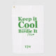 "Garde-le Cool et Birdie It" serviette de golf. Gardez votre cool de tête dans le style avec cette serviette ludique sur le thème du golf! Avec le texte amusant "Gardez-le Cool et Birdie It" à côté d'un dessin fantaisiste d'une balle de golf rebondissante, cette serviette est parfaite pour tous les amateurs de golf. Idéal pour les vacances, les anniversaires, les retraites ou toute occasion spéciale, cette serviette fait un cadeau parfait.