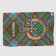 Le badge de crête Clan Anderson entouré d'une courroie et boucle sur l'arrière - plan tartan. Texte personnalisé.