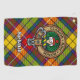 badge de crête Buchanan entouré d'une courroie et boucle sur l'arrière - plan tartan clan. Texte personnalisé.