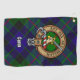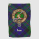 Clan Gunn badge crête entouré d'une sangle et boucle sur l'arrière - plan tartan. Texte personnalisé.