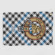 Clan Haig crest badge surrounded by a strap and buckle over check tartan background. Custom text.