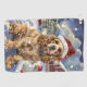Ce design festif reflète l'esprit joyeux de la période des fêtes, avec un adorable petit portant un chapeau de Père Noël. Le chien est niché dans un pays des merveilles hivernales, avec un bonhomme de neige, un sapin de Noël décoré et des cadeaux joliment emballés. Les flocons de neige tombent doucement, ajoutant une touche magique à la scène, tandis que les couleurs vives des décorations de vacances créent une atmosphère chaleureuse et joyeuse.