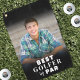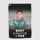 This custom golf towel features your own photo printed in the center with a smooth black gradient at both the top and bottom. The lower gradient includes white text that reads “Best Golfer By Par,” which you can personalize to say anything—like “Best Dad,” “Best Son,” “Best Grandpa,” or any short message that fits.