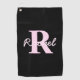 Serviette De Golf Cute Customizable Monogram | Light Pink & Black