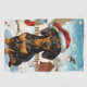 Ce design festif reflète l'esprit joyeux de la période des fêtes, avec un adorable petit portant un chapeau de Père Noël. Le chien est niché dans un pays des merveilles hivernales, avec un bonhomme de neige, un sapin de Noël décoré et des cadeaux joliment emballés. Les flocons de neige tombent doucement, ajoutant une touche magique à la scène, tandis que les couleurs vives des décorations de vacances créent une atmosphère chaleureuse et joyeuse.