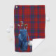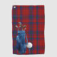 Serviette bleue et rouge de golf faite dans le motif écossais classique de plaid de tartan de MacDougall de clan. Les graphiques d'un sac de golf bleu avec les clubs et la boule, décorent l'aile gauche de la serviette.
