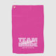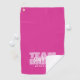 Conception de serviette de golf personnalisée pour vos demoiselles d'honneur avec "ÉQUIPE MARiée" en caractères gras rose clair sur un fond rose foncé tendance uni. Personnalisez le nom de la demoiselle d'honneur en écriture blanche croquante. Le titre ou le texte personnalisé est présenté ci-dessous. Toutes les couleurs de ce design sont personnalisables dans l'outil de conception Zazzle ! Envoyez un message pour les questions ou les demandes de couleur personnalisée.