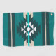 Motif de ethnie bohème aztèque aux formes géométriques blanc, beige et turquoise sur arrière - plan rayé