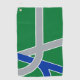 Golf Towel avec un design avec le drapeau d'Albany, Oregon. Un drapeau vert, gris et bleu