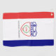 Golf Towel avec drapeau de la ville de Cleveland, Ohio; drapeau avec trois bandes verticales de rouge, blanc et bleu avec sceau de la ville dans le centre