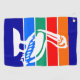 GolfTowel avec un design avec le drapeau de Saint-Pétersbourg, Floride. Un drapeau à rayures orange, rouge, vert, bleu et bleu marine avec un symbole pélican blanc
