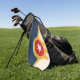 Serviette de golf avec un design avec le drapeau de Tulsa, Oklahoma. Un drapeau beige et bleu marine avec un bouclier or Osage contenant un cercle rouge et une étoile beige à six branches