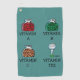 Funny Golfer Vitamin Tee Cartoon Golf Towel contient toutes les vitamines pour garder un vieux duffer en santé; A, B, C, et le plus important de tous...Vitamin Tee! Un joli article humoristique permettra aux golfeurs de partager un rire avec vos compétiteurs de liens avant de vous montrer les uns les autres sur les greens. Parfait deuxième cadeau ou rembourrage pour les duffers. Choisissez une autre couleur si vous n'aimez pas celle que vous voyez ici.