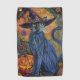 Embrassez l'esprit d'Halloween avec ce design enchanteur avec un chat mignon dans un casquette de sorcières entouré de citrouilles sculptés. Parfait pour ajouter une touche de charme éffrayant à vos célébrations festives.
