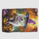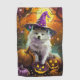 Embrassez l'esprit d'Halloween avec ce design enchanteur avec un chien mignon dans un casquette sorcier entouré de citrouilles sculptés. Parfait pour ajouter une touche de charme éffrayant à vos célébrations festives.
