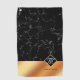 Serviette De Golf Élégant noir marbre et cuivre Script Monogramme