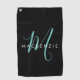 Serviette De Golf Élégant Noir Turquoise Script Monogramme moderne