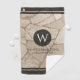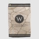 Ajoutez une touche d'élégance et de sophistication à votre jeu avec cette serviette de golf, qui dispose d'un motif sépia et aléatoire de pierres fissurées bordées de barres noires. Personnalisez avec le nom de famille, l'initiale ou le monogramme pour le nom de famille et la date d'établissement. Design © W.H. Sim, Tous droits réservés. Voir plus sur zazzle.com/expressionsoccasions