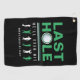Célébrez le dernier swing du marié avant la bague avec cette serviette de fête de bachelor sur le thème du golf, verte, noire et blanche. Conçue avec la phrase "Dernier trou qu'il jouera jamais", ce design amusant et audacieux est parfait pour une sortie de golf ou un week-end d'enterrement de vie de garçon. Un excellent ajout au parcours, cette serviette garde les clubs propres tout en ajoutant une touche ludique à la célébration. Personnalisez-la avec le nom du marié et les détails de l'événement pour un souvenir personnalisé !