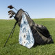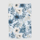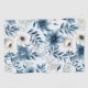 Sur un arrière - plan bleu clair, se trouve un joli motif de fleurs bleu foncé et beige aux baies d'or.