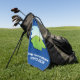 Ce design moderne et amusant et personnalisé comprend un golf vert, un golf trou, un drapeau, et bouger une balle de golf sur un arrière - plan bleu avec votre nom et la citation humoristique "Scratch Golfer" sur un arrière - plan bleu. Idéal pour le golfeur qui tente d'augmenter son handicap, ou qui sait veut améliorer son entraînement et sa mise !
