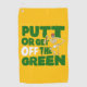 Loud yellow “PUTT OR GET OFF THE GREEN” towel with a cheeky skeleton golfer—made for golfers who love fast play and clean trash-talk on the dance floor.