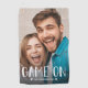 Serviette de golf moderne et tendance Photo. Conception avec votre photo unique préférée et le script de typographie "GAME ON". Personnaliser avec un nom de famille ou un texte.
