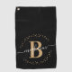 Fille, moderne, tendance, élégant, noir et or monogramme nom initial script personnalisé monogrammed serviette de golf monogrammed personnalisé. Doté d'une initiale monogramme et d'un script de nom de girly dans une police de caractères de calligraphie lettrée et d'un cadre de cercle pointillé autour de votre monogramme. Grand cadeau féminin pour mère, anniversaire, soeur, mariage, douche nuptiale, fête et baby shower doux de 16 ans et pour toute personne qui aime la chose de style moderne assez.