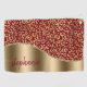 Ce design présente un motif tacheté en métal bordeaux et or à gauche, et une image en faux feuille d'or à droite en forme d'onde bordée d'une parties scintillant en faux or. Personnalisez-le avec votre nom ou votre monogramme dans une police de brosse manuscrite bordeaux stylisée.