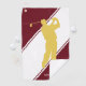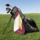 Le golfeur de votre vie adorera cette serviette de golf personnalisée! Une image en silhouette dorée d'un golfeur en pleine balançoire est au centre. L'image est placée sur une diagonale arrière - plan de rouge marron contrastée avec le blanc. En bas à droite se trouve votre texte personnalisé en blanc. Très classe et distinctif !