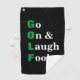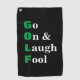 Tous les golfeurs aimeront cette drôle Golf = Go On Laugh Fool serviette de golf! Le texte vert et blanc sur la serviette noire est "Allez et riez fou" avec la première lettre de chaque mot qui dit GOLF en vert.