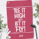 Citation de golfeur mignonne "Tee It High & Let it Fly!" le design comporte une police amusante du milieu du siècle en blanc sur un solide arrière - plan rouge magenta. Personnaliser avec des initiales monogrammées, nom ou texte court avec le modèle simple à utiliser. La couleur de la citation et de la serviette est personnalisable. La couleur de police ou le style des initiales peuvent également être customisés. La typographie est une conception graphique vectorielle qui peut être facilement transférée vers d'autres produits Zazzle grands ou petits, et qui conservera la clarté sans pixellisation. Message avec des requêtes de couleur personnalisées de questions.