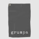 A golf towel just for Grumpa! Personalized using a retro typewriter font in white on a black background. Great gag gift for grumpy grandpa.