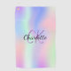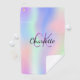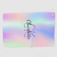 Un arc-en-ciel, licorne, arrière - plan de couleur holographique en rose, violet et vert menthe. Personnalisez et ajoutez un nom, vos initiales monographiques. Le nom est écrit avec un script de style écrit à la main.