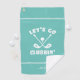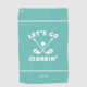 Conception de club de golf drôle avec "Allons clubber" au centre en caractères blancs disposés avec deux clubs de golf et une balle de golf sur un fond uni de couleur sarcelle clair. Il y a deux petites bandes blanches d'accentuation au-dessus et en dessous de la conception centrale. La partie inférieure contient un modèle moderne pour un monogramme personnalisé, un nom ou un texte au choix. Message ci-dessous cette liste ou envoyez un e-mail à beachpause@gmail.com avec des demandes de couleur personnalisées.