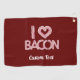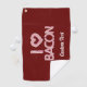 Bacon disant avec des lettres créées à partir de bandes de bacon. Couleur arrière - plan personnalisée. Texte personnalisé.