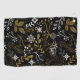 Intricate floral pattern with gold and white branches, leaves, and flowers on a black background. The design feels elegant and sophisticated.