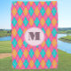 Cette serviette de golf personnalisée pour dames présente un Jacquard orange vif, aqua et rose avec un monogramme personnalisable sur un arrière - plan rose. C'est un cadeau élégant et mignon pour un golfeur. C'est un cadeau utile pour votre mère, votre soeur, votre grand-mère, ou toute femme dont le passe-temps est de jouer au golf. Serviettes de golf monogramme pour femmes. Créez vos propres serviettes de golf personnalisées avec nos modèles. Des serviettes de golf mignonnes ou drôles aux serviettes de golf personnalisées avec photos, la boutique Artisan Shopper propose une large gamme de modèles assortis pour hommes et femmes. Nos serviettes de golf en microfibre avec photos et monogrammes peuvent être éditées pour en faire vos propres.