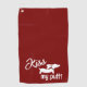 Add a wag to your swing with this cheeky dachshund golf towel! Featuring a bold red backdrop, a spunky sausage dog, and the playful phrase “Kiss My Putt,” this towel is perfect for golfers who love their long dogs as much as their game.